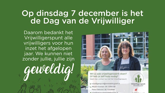 Op dinsdag 7 december is het de Dag van de Vrijwilliger