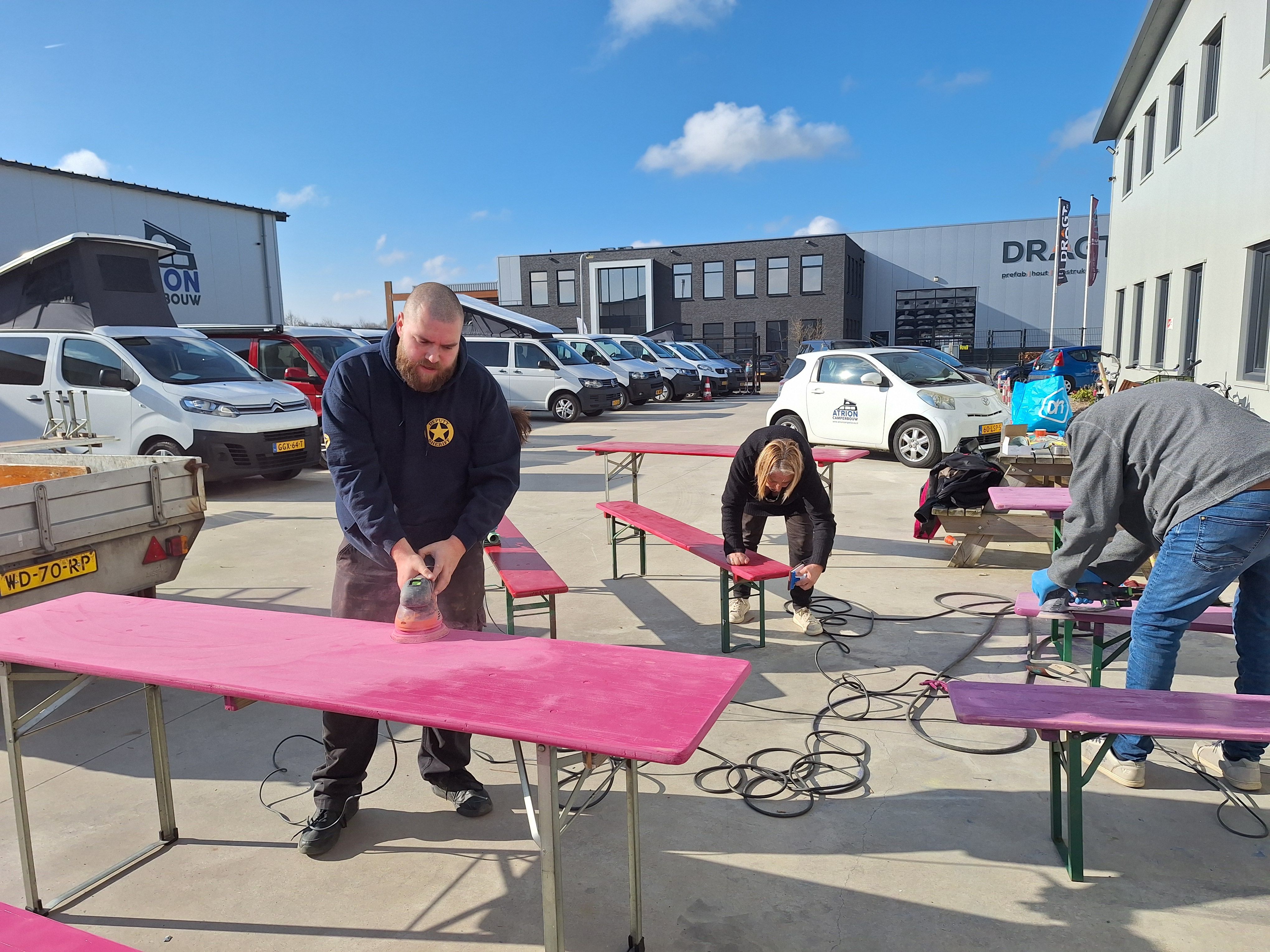 NLdoet was landelijk ook dit jaar weer een groot succes! Meer dan 65.000 vrijwilligers gingen aan de slag. Van het helpen van organisaties met achterstallige klusjes tot aan mensen een leuke dag bezorgen. Samen met ons team Sociale basis hebben wij als Vrijwilligerspunt de handen uit de mouwen gestoken bij Speelweek Wolvega. Alle tafels en bankjes geschuurd en in de grondverf gezet, zodat ze 's middags in een mooi kleurtje afgelakt konden worden. Ze zijn weer gebruiksklaar voor de speelweek dat in augustus!