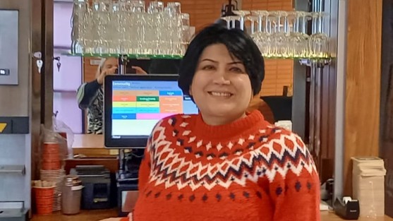 “De werkzaamheden zijn heel divers. De ene keer snij ik groentes, dek ik de tafels , de ander keer help ik mee met het koken van de maaltijd. Zo heb ik ook wel eens een toetje uit Iran gemaakt. Het is gezellig en dankbaar vrijwilligerswerk. Het is mooi om te zien dat de gasten het naar hun zin hebben en dat er veel geklets en gelachen wordt en natuurlijk genoten wordt van het heerlijke eten.
