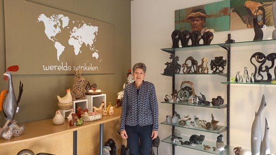 Nadat Vroukje is gestopt met haar baan als apothekersassistente hoort ze dat de Wereldwinkel op zoek is naar vrijwilligers. Ze besluit te reageren en tot vandaag de dag werkt ze hier met veel plezier.